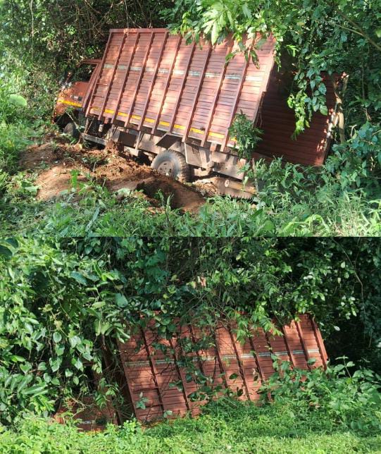 दोडामार्ग, ता.०९: वीजघर राज्यमार्गावरील आवाडे येथे एक आयशर मालवाहू गाडी नाल्यात घसरून अपघातग्रस्त झाली आहे. या घटनेत गाडीचे मोठ्या प्रमाणावर नुकसान झाले असून अपघातानंतर घटनास्थळी चालक किंवा अन्य कोणतीही संबंधित व्यक्ती आढळून आलेली नाही. त्यामुळे चालक जखमी झाला असण्याची शक्यता व्यक्त होत आहे.