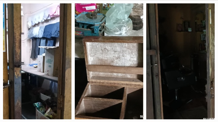 परशुराम दळवी यांचे किराणा दुकान फोडून आतील ५५० रुपये रोकड, दीपक नाईक यांचे टेलरिंग दुकान फोडून आतील २०० रुपये रोकड, अविनाश कदम यांचे सलून फोडून २०० रुपयांची रोकड, तर आणखी एक भुसारी दुकान फोडून आतील १ हजार रुपयांची रोकड चोरट्याने लांबविली.